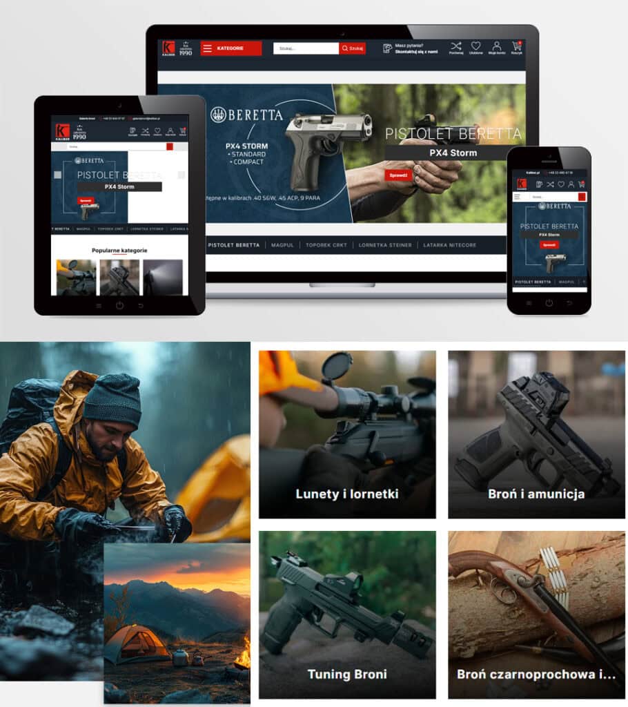 Sklep internetowy KALIBER został zaprojektowany w oparciu o nowoczesną platformę PrestaShop, która zapewnia łatwą nawigację oraz intuicyjny proces zakupowy. Dzięki zastosowaniu technologii RWD, strona sklepu wyświetla się doskonale, zarówno na komputerach, jak i urządzeniach mobilnych. Projekt został zoptymalizowany pod kątem szybkości działania oraz wygody użytkownika.