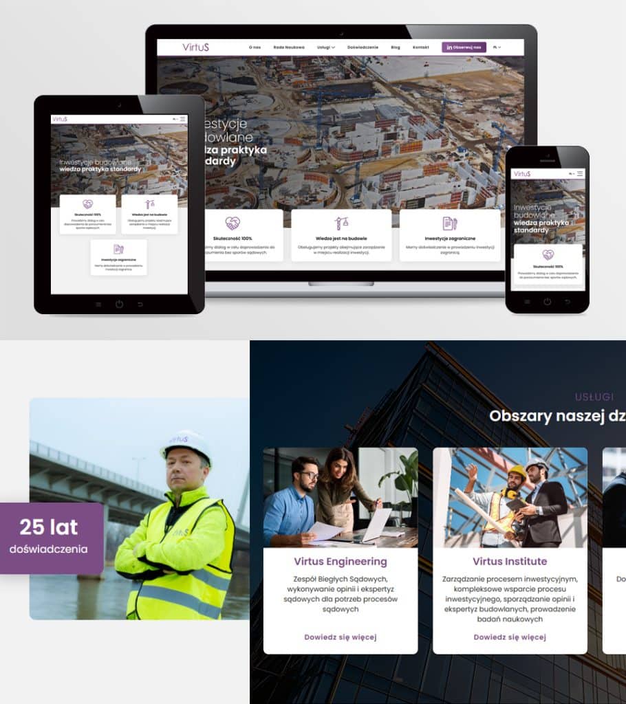 VIRTUS to unikalna marka oferująca kompleksowe wsparcie eksperckie dla uczestników procesu inwestycyjnego w budownictwie. Działalność opiera się na doświadczeniu specjalistów realizujących prestiżowe inwestycje w Polsce, wsparciu Rady Naukowej, Zespołu Biegłych Sądowych i Rzeczoznawców Budowlanych oraz dedykowanego zaplecza prawnego. Połączenie praktyki budowlanej, wiedzy technicznej i prawnej pozwala firmie skutecznie wspierać podmioty krajowe i zagraniczne, również w obszarze ekspansji na rynki międzynarodowe.
